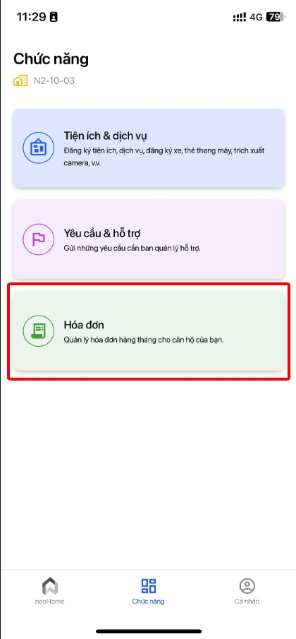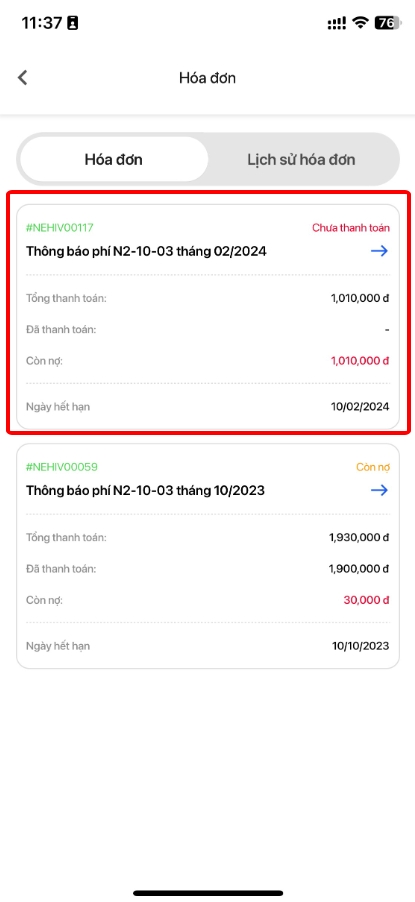 Cách xem danh sách thông báo phí và lịch sử thanh toán
